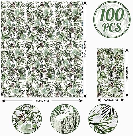 There are 100Pcs Christmas theme napkins with pine branches and pine cones for you. It is a great choice to be served as party supplies for the sufficient quantity and decorative nature.