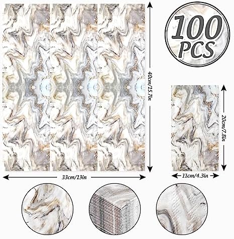 100 sheets guest napkins, patterned with exquisite marble, special and beautiful, suitable for many occasions.