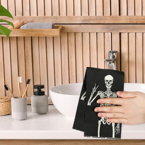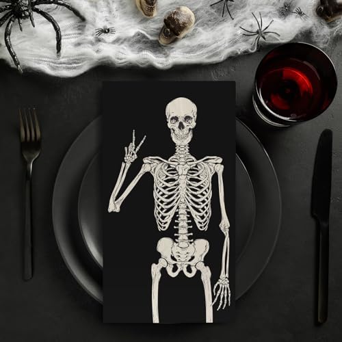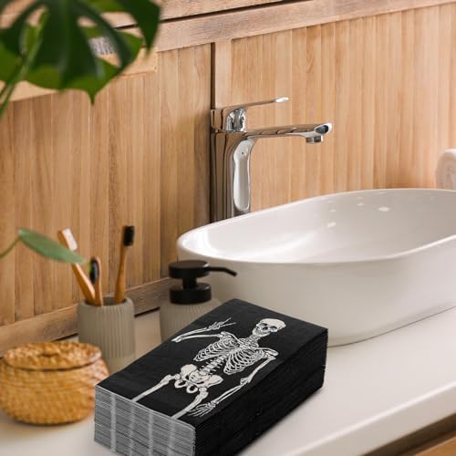 80 sheets guest napkins, printed with skeleton in white against black background, its popular festival elements fit for the theme of Halloween.