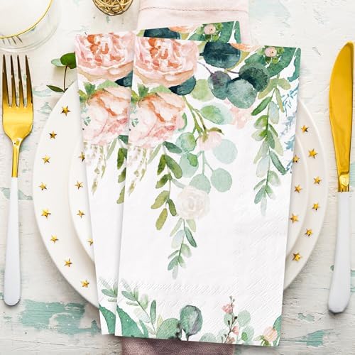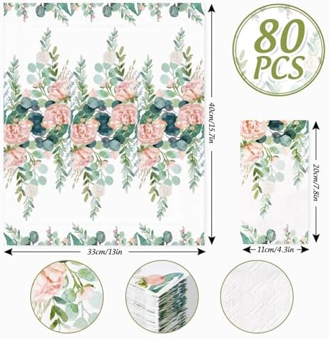 80 sheets guest napkins, patterned with flowers and leaves, full of fresh and elegance, suitable for many occasions.