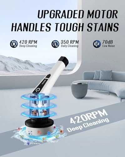 【High-Capacity Rechargeable Battery & Cordless & Lightweight Electric Scrubber】The rechargeable battery capacity of the electric scrubber for cleaning is as high as 2600mAh. The scrub brush only takes 2.5 hours to charge and can be used for up to 90 minutes in a row. The power display function allows you to use the electric spin scrubber cordless with confidence. Far away from the stumbling long wire, you can use it to easily clean any corner of the room. Additionally, the shower scrubber is lightweight, making it comfortable for users to hold, and easier to use for longer periods of time.