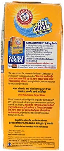 ARM & HAMMER Baking Soda is the original cleaning and freshening secret, and has been for generations. Today, ARM & HAMMER plus OxiClean Dirt Fighters Carpet Odor Eliminator uses the power of Baking Soda to neutralize even the toughest odors deep within carpets. And, Vacuum Booster, loosens dirt and helps your vacuum lift 25% more dirt than vacuuming alone. Powder eliminates odors and releases pet hair and dirt. Lasting fragrance stays behind. Rids your home of the not-so-nice part of having a pet. Unwanted hair and dirt are vacuumed with ease, and odors are destroyed deep down at the source. Pack of 2.
