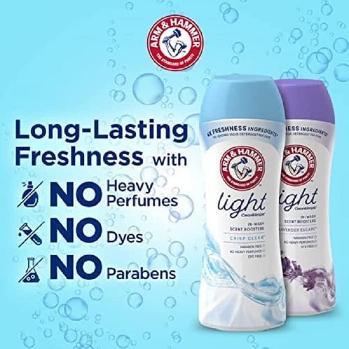 Fresh and light scent Booster for washer; add with Arm & Hammer Clean & simple liquid laundry detergent for a powerful clean and LASTING freshness.