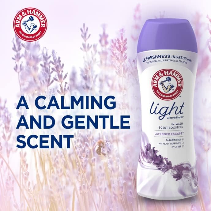 New Arm & Hammer Clean & simple Lavender escape scent Booster has lasting freshness with 4 essential ingredients and no harsh chemicals. Part herbal and part floral, Lavender offers soothing comfort with a sweet herbal aroma that evokes a sense of balance delivered through tiny scent crystals. A welcoming fragrance that draws out a clean atmospheric freshness flowing from top to bottom. It’s also free from unnecessary chemicals; no dyes, phosphates, brighteners or parabens. Use with Arm & Hammer Clean & simple liquid laundry detergent for a powerful clean and lasting freshness.