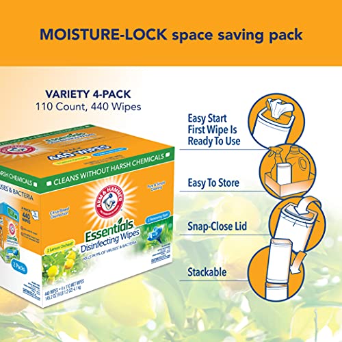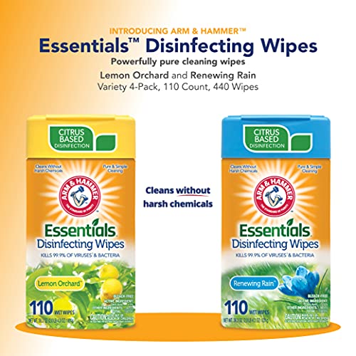 ARM & HAMMER Essentials Disinfecting Wipes meet the EPA’s criteria for use against Virus and bacteria. The Arm & Hammer Essentials Disinfecting Wipes use citrus-based disinfection killing 99.9% of viruses and bacteria. Powerfully pure cleaning inspired by nature, these wipes are great for use in kitchens, bathrooms, classrooms, pet areas, gyms, car interiors, dorms and more. Pure & Simple cleaning without harsh chemicals can be used around kids and pets. Disinfecting wipes are safe for use on stainless steel, sealed granite, finished hardwood, tubs & shower walls, toilet exterior, and hard nonporous surfaces of car interiors. Recommended to test a small area first. To use, simply use a fresh wipe on the surface and let air dry. Repeat for stubborn stains. For surfaces that come in contact with food, a water rinse is required.