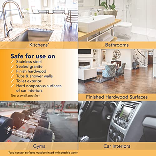 SAFE FOR USE ON: Stainless steel, sealed granite, finished hardwood, tubs & shower walls, toilet exterior, hard surfaces of car interiors, and cell phones