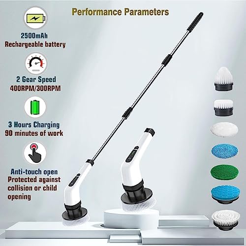 Autsmile Electric Spin Scrubber Cordler Cleaning Brush with 7 Replaceable Brush Heads and Adjustable Extension Handle Electric Bathroom Scrubber, for Tile, Floor, Tub, Window, Wall, Car