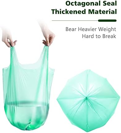[25% Thickening ] – 25% thickening inside the mini trash bags 4+ gallon , without leakage and splash. It is strong enough to hold dry and wet food residues in the kitchen. The handle of the compost bags small is ergonomic and can be lifted, bundled and carried without polluting hands.
