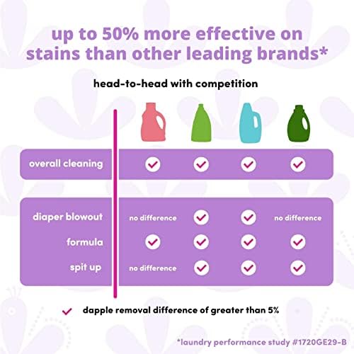 SAFE AND EFFECTIVE LAUNDRY DETERGENT: Dapple Baby Laundry Detergent is specially designed for baby messes. It removes up to 50% more stains, including formula, poop and spit up!*