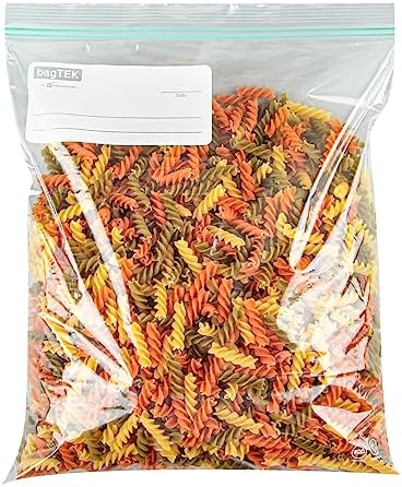 25 ZIP BAGS PER ORDER: Measuring 15 inches long by 13 inches wide, these bags with double zippers can store and organize a variety of food items. With each order, you’ll receive 25 zip pouches.