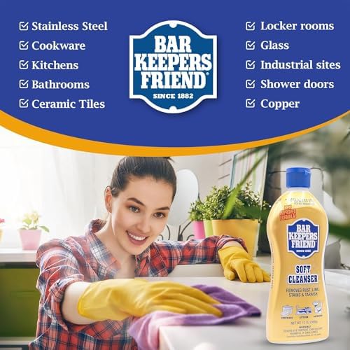 Bar Keepers Friend Soft Cleanser is the stainless steel cleaner you’ve been waiting for. This soft scrub cleanser, is a true household hero. It’s like having a trusted bartender for your surfaces, ready to serve up a sparkling finish every time.