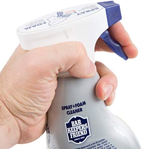 Bar Keepers Friend MORE Spray + Foam: This all purpose cleaner spray is a multipurpose cleaner, perfect for use as a stainless steel cleaner for greasy fingerprints on kitchen appliances. For hard to reach surfaces, MORE spray head works upside down!