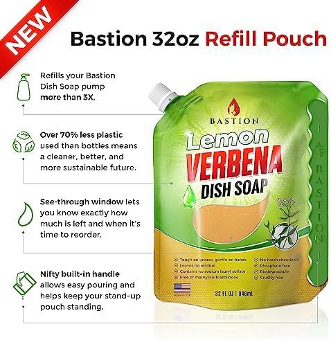 Tough On Grease, Gentle On Hands: With ultra strength, Bastion’s Dish Soap removes stubborn oils and food particles from your dishes, glasses, pots, and pans so that no food odor is left to linger. Rinsing off with ease, you no longer need to worry about sticky hands or soap-tasting dishes.