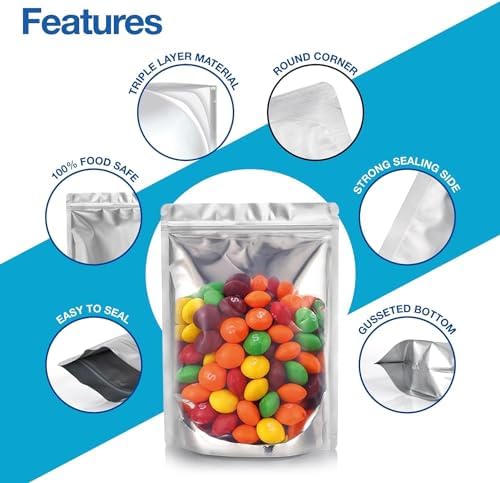 Clear Front & Glossy Back: Mylar food storage bags are a must have household item. The transparent front helps to identify the stored product easily