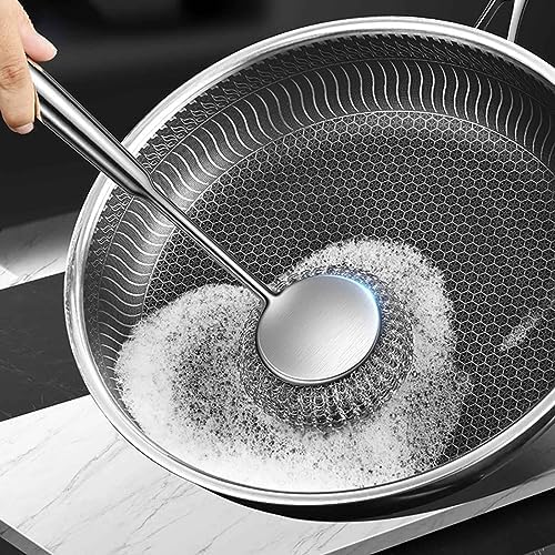 BELOWSYALER Stainless Steel Scrub Brush for Easy Cleaning for Cast Iron Pans Brush Cleaner Scouring Brush Heavy Duty Metal Brush