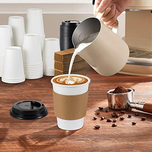 BENEVAL [100 Pack] 12 oz Disposable Coffee Cups with Lids and Sleeves, 12 oz To Go Coffee Cups with Lids, Sturdy White Paper Disposable Cups with Lids for Hot and Cold Beverage