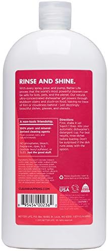 FOR BEST USE – First, shake it up. Squirt 1 tbsp of dishwasher liquid into your automatic dishwasher’s detergent cup. For best results, rinse dishes before loading.