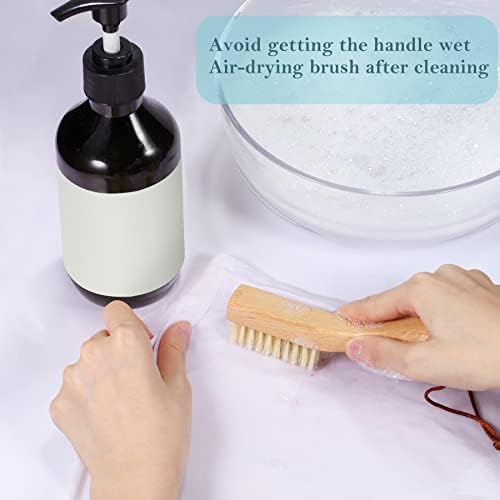 Small but useful: Size: 6.3 x 0.79 x 1.26 in, Bristle Length: 0.6 in. This brush works great with a spot remover to scrub out stains. The soft white boar bristles don’t damage or pill fabrics as a stiff toothbrush might.