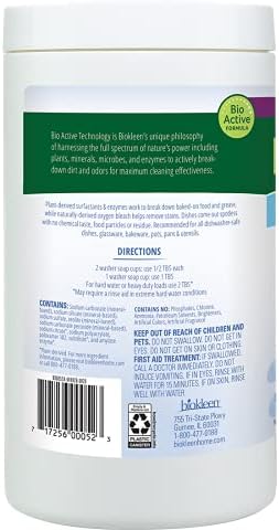 Plant-based surfactants gets off tough baked-on-food and grease, while natural oxygen bleach helps remove stains