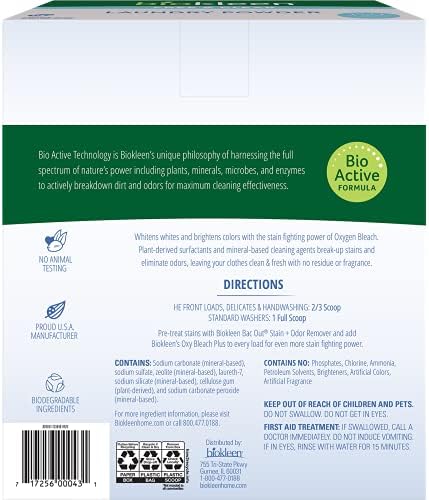 Whitens and brightens whites and colors with the stain fighting power of Oxygen Bleach. Plant-based surfactants and extracts of citrus and grapefruit seed help remove tough stains and odors. Rinses clean and leaves no harsh fumes or residue on fabrics.