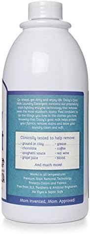 Go ahead, get dirty and enjoy life. Daisy’s Goat milk laundry detergent contains our proprietary blend of stain fighting enzyme technology that removes even the most stubborn stains while using the power of goat milk to soften and preserve your clothes. Feel confident to do the things you love in teh clothes you love, knowing that Daisy’s Goat milk laundry soap helps protect your fabrics, remove stains and leave your laundry clean and soft.