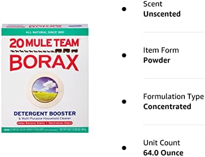 This package contains one 65 Ounce box of 20 Mule Team All Natural Borax Laundry Detergent Booster & Multi-Purpose Household Cleaner.