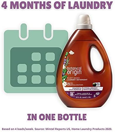 Botanical Origin Laundry Detergent is high-performing and plant-based (67% USDA bio based). It provides a deep clean for your clothes without the use dyes or brighteners. Nature’s a powerful force, which is why this detergent harnesses the power of plants to tackle the toughest stains. Botanical Origin can handle whatever laundry day throws its way. The formula is hypoallergenic, suitable for sensitive skin and dermatologically tested while also being scented. Choose between two down-to-earth scents inspired by nature: Orange Blossom & Citrus Leaves or Fresh Jasmine & Wild Lavender. Formulated for all water temperatures, including cold. Works with regular washers, high-efficacy (HE) washers, and even for hand washing. (Contains 72 loads of laundry.)