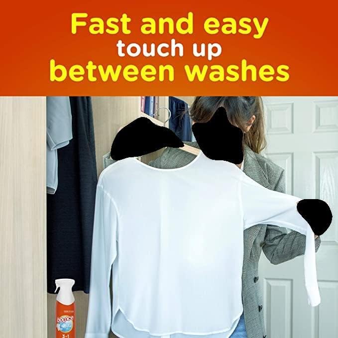 The piece of clothing you want to wear is wrinkled, doesn’t smell fresh, and you’re short on time. What do you do? That’s easy: You simply spray it with Bounce Rapid touch-up 3 in 1, an innovative wrinkle releaser, clothing Refresher and static remover fabric Spray that gives you presentable garments in a flash. It’s developed with fine mist spray technology to give you fine & even coverage that helps dry quickly on your clothes, so you can skip ironing or placing them in the dryer. Bounce 3-in-1 Spray gives you ready-to-wear clothes when you need them! releasing wrinkles, refreshing your fabrics, and removing static all in one go!