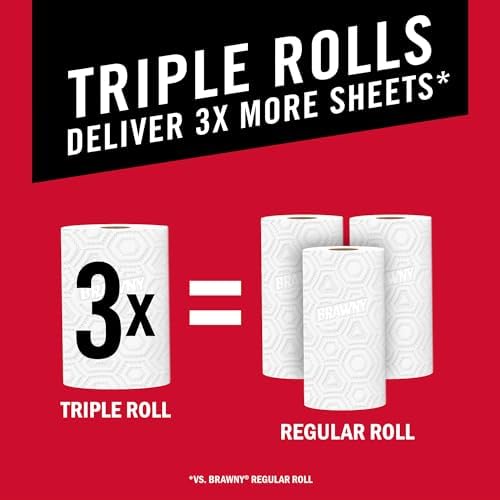 Brawny® Tear-A-Square® Paper Towels are our thickest and most absorbent paper towels yet—2x more durable vs. the leading store brand mainstream towel. That means you get the durability and dependability you’ve always loved, with even more strength to help tackle your biggest messes. Our strongest Brawny® ever gives you even more absorbency, and it’s perfect for all kinds of cleanup in your household. In addition to superior strength, our versatile sheet size options give you 3 different sheet sizes on every roll, perfect for handling whatever life throws your way — from strong quarter sheet squares, to a half sheet for meal prep, or a full sheet for bigger messes. No matter the size mess, Brawny® has the sheet size to take it on. This powerful versatility helps you enjoy longer-lasting rolls, minimizing wasted paper towels by providing the right size paper towel for every spill, drip, or splash. These paper towels are made from trees we work with our suppliers to replenish and our sourcing practices are certified by the Sustainable Forestry Initiative® Fiber Sourcing Standard (SFI-000007.) Choose the right paper towel for the task and enjoy longer-lasting rolls with the powerful versatility of Brawny® Tear-A-Square® paper towels. Stock up and save by ordering Brawny® paper towels in bulk!