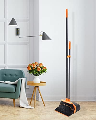 Saving Storage Space: Standing dustpan locks in open position for easy emptying, can easily dispose of dustpan’s contents into the garbage, compact broom dustpan set design lets you hang the broom and dustpan together on the wall, It is a great way to save storage space.
