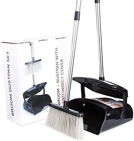 THIS IS A 2022 IMPROVED DESIGNED BROOM AND DUSTPAN SET WITH A MORE FLEXIBLE LID THAT CAN BE SEALED THE DUSTPAN , THE BROOM’S BRISTLES IS INCREASED FROM THREE ROWS TO FOUR ROWS,NO LONGER LEAK DUST AND SAVE YOUR SWEEPING TIME!.Will you be troubled by tiny dust and little paper that is not obedient and does not into the pan ?.Do you feel sad because of the broom’s bristles ?.Does the height of the broom make you feel depressed?.When the broom is dirty or full of hair, and you don’t want to clean it by hands,What should you do?Our BROOM AND DUSTPAN can solve all your troubles :.The dustpan of the broom and dustpan has a rubber lip that completely fit the ground and can easily capture tiny dust and little paper into the pan..The broom of the broom and dustpan has flagged bristles resulting in a larger surface area and a soft ,but it does not up warp.The long handle of the broom and dustpan allows you to Stands upright for comfortable sweeping..The teeth of the dustpan so that you can get rid of dirty on the broom without using your hands.