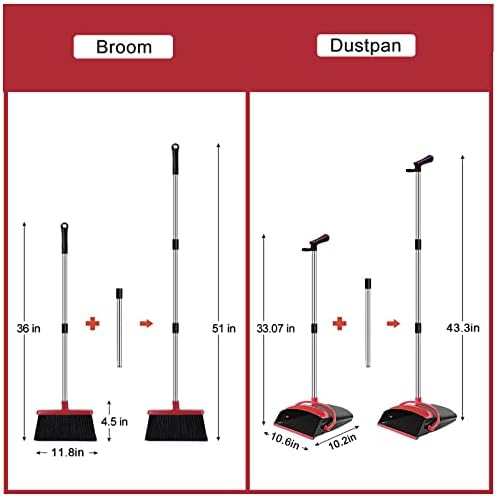 51 inch long handle broom and large-capacity dustpan perfect for sweeping and long handle allow you to stand upright for comfortable sweeping. You don’t need bending to sweep. It can be used to clean the ceiling.