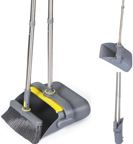 😘【Upgraded Dustpan for Home Cleaning 】The upright dustpan locks in the open position to easily dispose of trash without spillage or difficult cleanup. The front section of the dustpan has been upgraded to sit flush with the floor without the need for a rubber lip, allowing all trash and debris to easily enter the upright dustpan.
