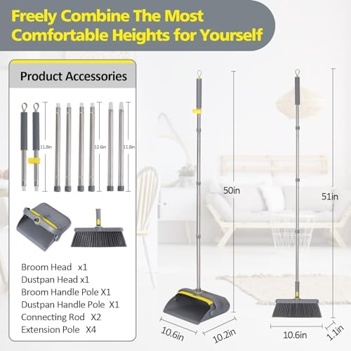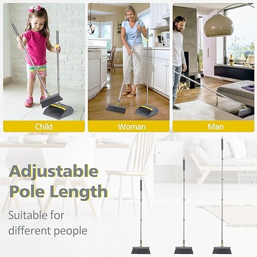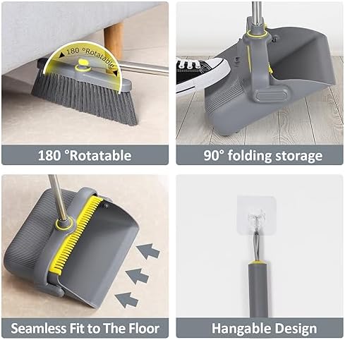 😘【Self-Cleaning Dustpan Teeth】Built-in scraper or comb teeth make it easy to clean tangled debris and bristles from your broom without using your hands. Makes cleaning easy and enjoyable.