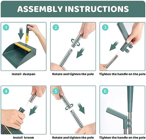 🏞️【Long Handle Broom and Dustpan】Refer to our installation instructions, you can easily assemble the broom and dustpan, the broom can reach 44 inches, the dustpan can reach 43 inches.No more bending over while sweeping, providing a comfortable and easy cleaning experience.The dustpan sits flush with the floor, preventing small garbage and dust from getting swept under it.
