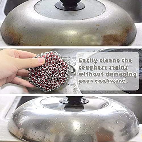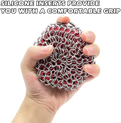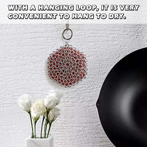 High Quality Material: The built-in honeycomb silicone chainmail scrubber is flexible enough to clean and cover every corner of the pots and strong enough not to collapse. Silicone cast iron pan cleaner is super easy to clean. It won’t breed bacteria and smell or stick like a sponge. (Best of all, this skillet accessories is affordable! Save money!)