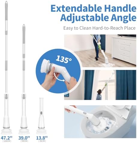 [𝐀𝐝𝐣𝐮𝐬𝐭𝐚𝐛𝐥𝐞 𝐋𝐞𝐧𝐠𝐭𝐡 & 𝐀𝐧𝐠𝐥𝐞]Customize your cleaning experience with a telescopic brush handle, adjustable BUQ spinning cleaning brush from 13.8 to 47.2 inches.The brush head offers 2 angles,180°and 135°,ensuring you reach and clean every nook and cranny effortlessly.