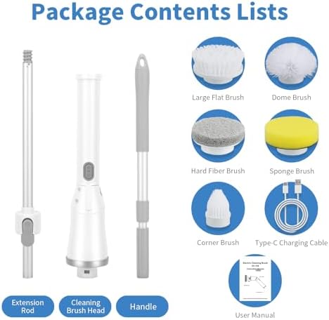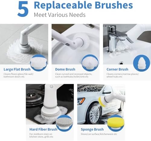 [𝟓 𝐕𝐞𝐫𝐬𝐚𝐭𝐢𝐥𝐞 𝐂𝐥𝐞𝐚𝐧𝐢𝐧𝐠 𝐇𝐞𝐚𝐝𝐬]BUQ electric cleaning brush comes with 5 interchangeable brush heads, including large flat, dome, corner, hard fiber, and sponge brushes.Tackle various surfaces such as tile floors, grout, furniture, and even windows with ease.