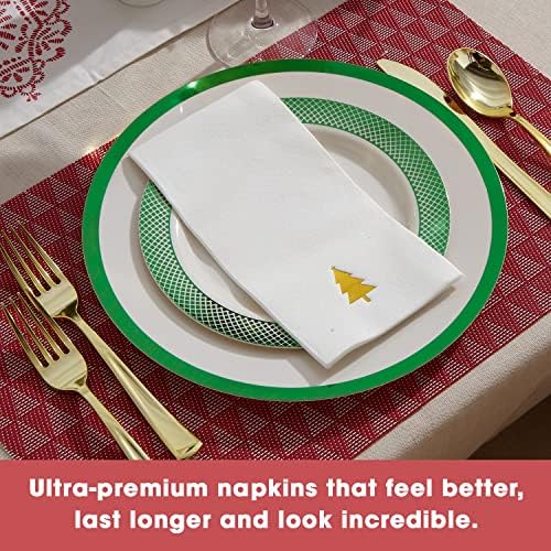 Enhance the Holiday Experience: Set the stage with our festive Christmas dinner napkins. The hot-pressed gold foil tree design gold napkins brings elegance to your holiday table.