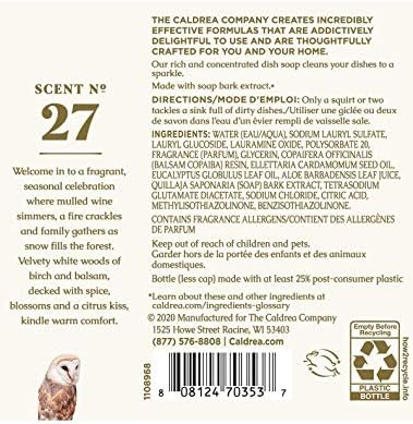 Caldrea Gilded Balsam Birch Dish Soap is rich, fragrant and effective. Lemon Verbena, Aromatic and Cardamom top notes leave you wanting more, while Cardamom, Eucalyptus and Balsam Essential Oils create an intricate, harmonious fragrance. Liquid dish soap cuts grease and keeps dishes bright and clean. With ingredients like natural degreaser Soap Bark for tough pans and Aloe Vera for soft hands, this dish soap rinses clean and is biodegradable.