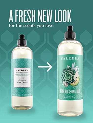 Caldrea Pear Blossom Agave Dish Soap is rich, fragrant and effective. Ozone, Melon, Apple and Lemon top notes leave you wanting more, while Lemon and Jasmine Essential Oils create an intricate, harmonious fragrance. Liquid dish soap cuts grease and keeps dishes bright and clean. With ingredients like natural degreaser Soap Bark for tough pans and Aloe Vera for soft hands, this dish soap rinses clean and is biodegradable.