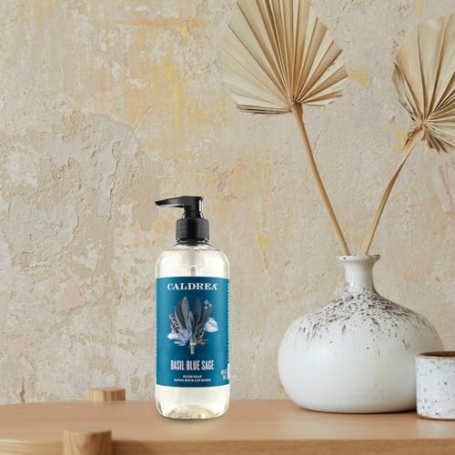 With Caldrea Basil Blue Sage Hand Soap, hands are soft, clean and fragrant as the bottle brightens kitchen or bath. Aloe Vera Gel, Olive Oil and essential oils cleanse and condition.