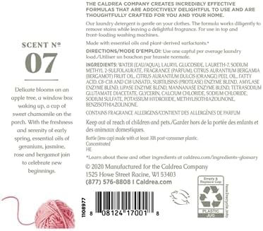 Caldrea Sweet Pea Laundry Detergent is hardworking yet respectful to your wardrobe. Ozone, Chamomile, Apple and Mandarin top notes leave you wanting more, while Chamomile, Bergamot, Rose and Coriander Essential Oils create an intricate, harmonious fragrance. Powerful plant-based ingredients keep whites white and colors vivid. HE compatible, this biodegradable laundry soap is safe and effective for all fabrics and water temperatures.