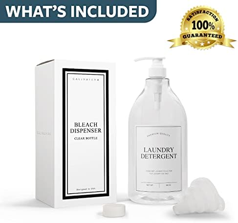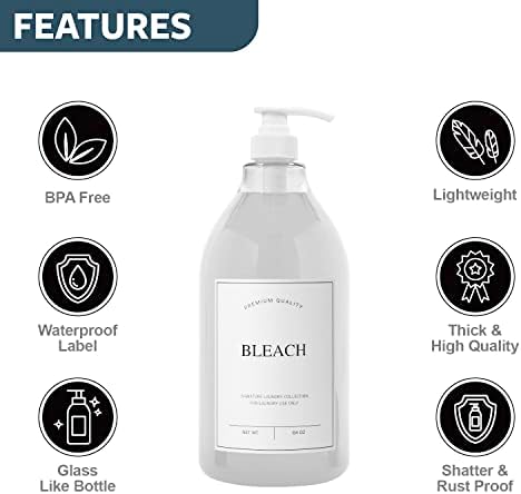 MODERN DESIGN: No need to use mismatching colors, shapes, and sizes of the laundry liquid containers. Our laundry bottles feature modern look and will help you tidy up your laundry room with its modern and chic design. Both clear and amber bottles along with pearl white and pearl black waterproof labels are available to fulfill your preference. Pair this bleach disperser with our laundry detergent and fabric softener set