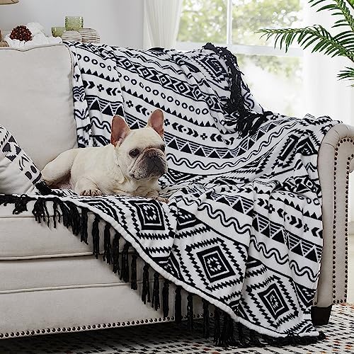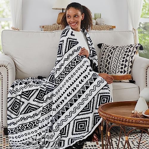 [Unique Design]This boho decor throw blanket has a beautiful bohemian printing pattern with black and white colors. With two sides tassel fringed, the edgy soft throw blanket is a stylish piece to add to your decor.