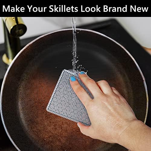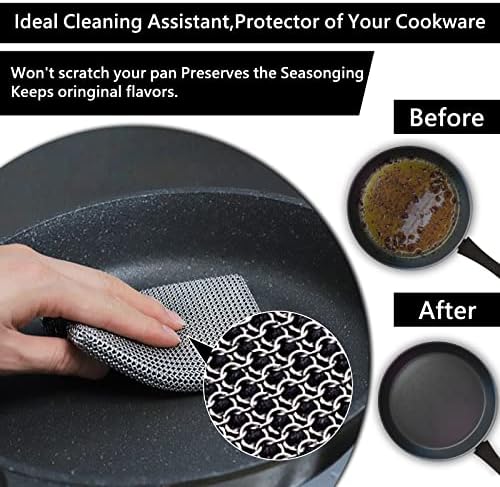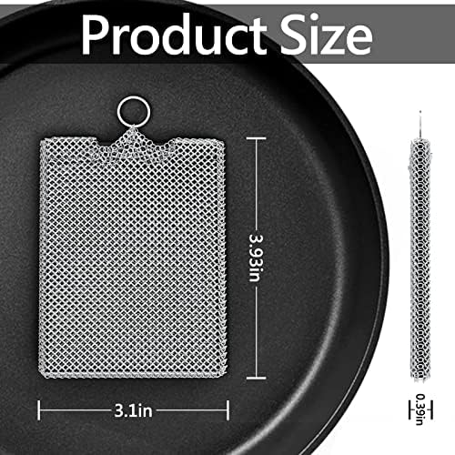 💧【GREAT RUST RESISTANT】 Cast iron chainmail scrubber is desiged with the highest quality FDA food grade anti-rust stainless steel, which is odorless, durable and long lasting. Easy to store and hang cast iron skillet cleaner anywhere to dry. Save space for your kitchen.Recommended by chefs as a necessary cookware accessories.Valuble for money!