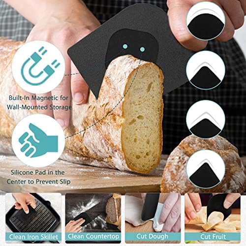 【PAN SCRAPER TOOL】The pan scraper is made of food-level nylon, great for cutting pizza, dough or fruit and spreading butter. 4 unique edges make it easy to clean those hard-to-reach corners. Middle silicone pad offers anti-slip grip when you use.