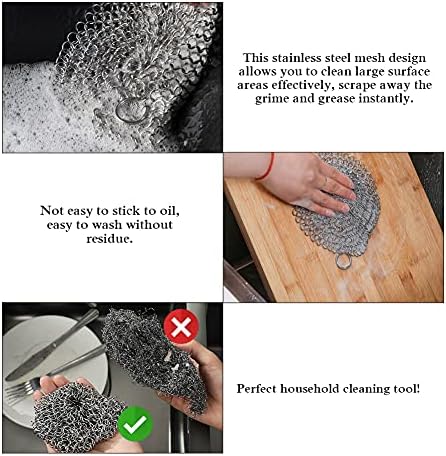 【304 stainless steel cleaner】High quality of rust proof, resistant 304 stainless steel, hygienic, safe and durable. Reusable tool, removes even the most stubborn grime and grease from your cast iron cookware.