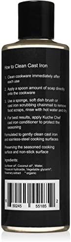 Unlike most dish soaps, this Cast iron soap contains no harmful additives, no artificial thickeners or gels. Kuche Chef believes the best way to clean is with natural ingredients, which are 100% Earth-friendly and safe for everyone including kids, pets and those with sensitive skin!