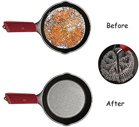 Easy to Use & Renew your Cast Iron: This cast iron skillet scrubber makes it easier to clean grime from your home kitchen cast iron cookware while ensuring that precious seasonings are not scraped off. Or, reinvent, revitalize and renew rusted or corroded cast iron and provide the perfect cornerstone to create a new layer of seasoning that culminates in a nonstick pan.